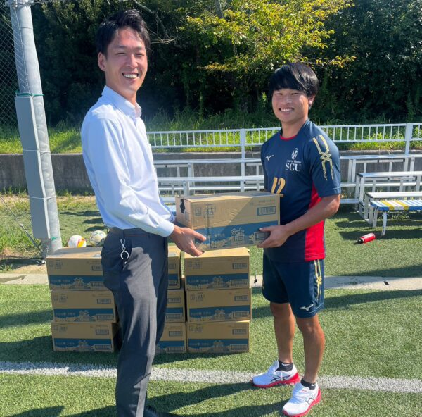 株式会社三福綜合不動産は2023年9月3日、聖カタリナ大学・サッカー部に協賛品を贈呈しました!