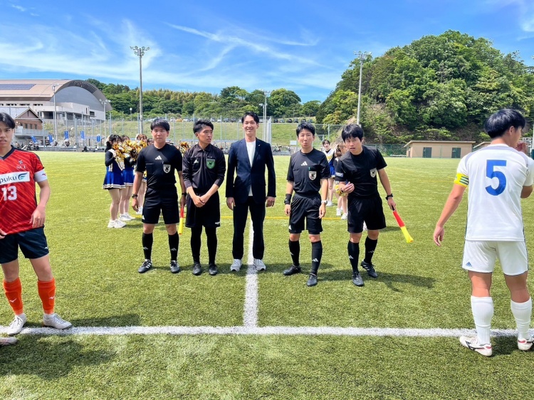 サッカー大会で楽しんだ後にキックオフとなった松山大学サッカー部との対戦は、因縁の「松山ダービー」として、選手のみなさんもとても気合が入っていました。