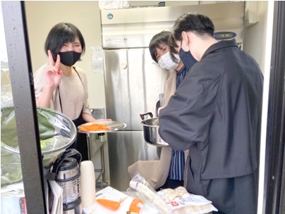 出来上がった豚汁は、内定者と社員の方々とていれぎの湯スタッフさん、みんなで美味しくいただきました!