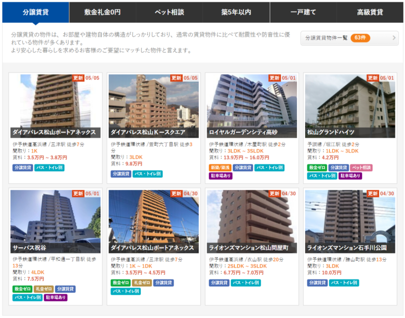 分譲賃貸の賃貸物件一覧ページ – 【松山賃貸ナビ】