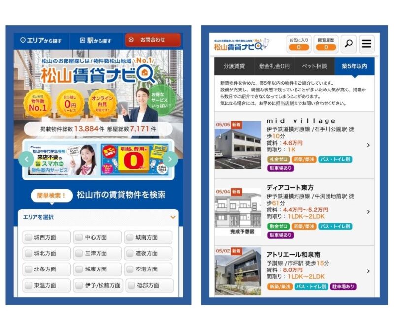 リニューアルで見やすくなった『松山賃貸ナビ』で、ご自宅やお仕事の休憩時間にもサクサクお部屋探し!