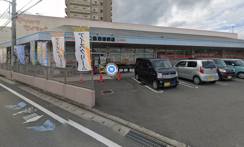 ベルデュール土居田 D棟から近いスーパーは松山生協 西雄郡店で、徒歩9分のところにあります。