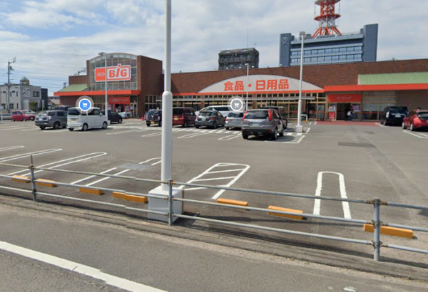 野瀬ハイツから近いスーパーはザ・ビッグ 松山山越店で、徒歩4分のところにあります。