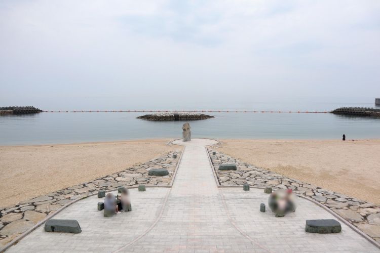 砂浜と海岸線を一望できる「夕日の観覧席(階段式護岸)」は、伊予灘に沈むオレンジ色の太陽を眺めるのにぴったり。