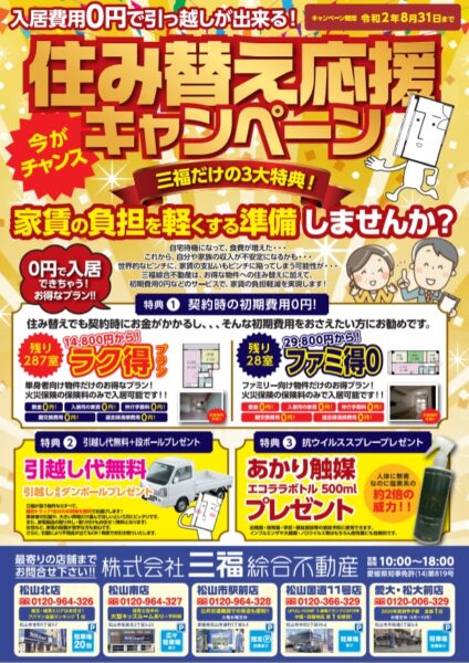 給付金があれば引越できるかも!?松山市など中予のお部屋探しは三福へ!