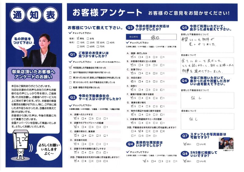 今回は、三福グループ・三福社宅サービス法人営業課で頂戴しましたお客様の声をご紹介いたします。