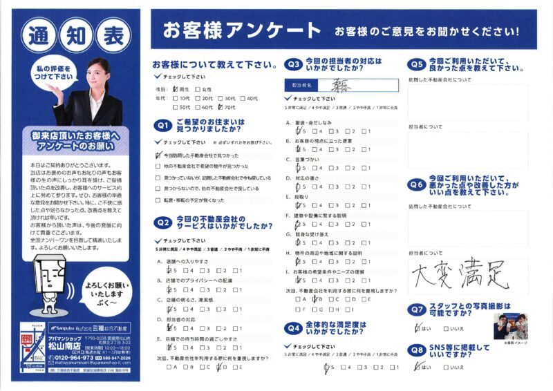 三福綜合不動産の「松山賃貸ナビ」では、お客様からいただきましたアンケートをご紹介しております。